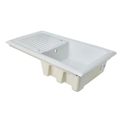 Evier A Encastrer 1 Bac Avec Egouttoir Ceramique Blanc Leroy