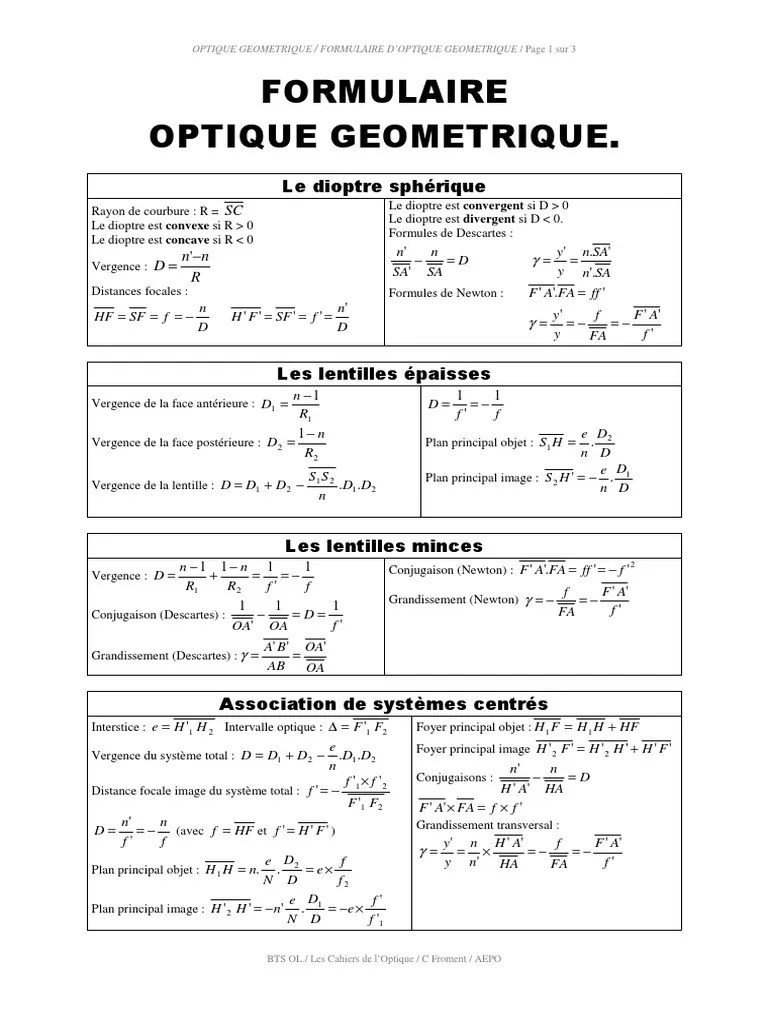 Limage se forme apres la lentille. Dans ce cas un faisceau de rayons lumineux issus de f emergera du systeme en un faisceau de rayons paralleles entre eux et a laxe optique. O f f f o of f c 1 1 a b a b o f f controles corriges 1. On appelle foyer principal objet le point f situe sur laxe optique dont l image se situe a linfini sur laxe optique.