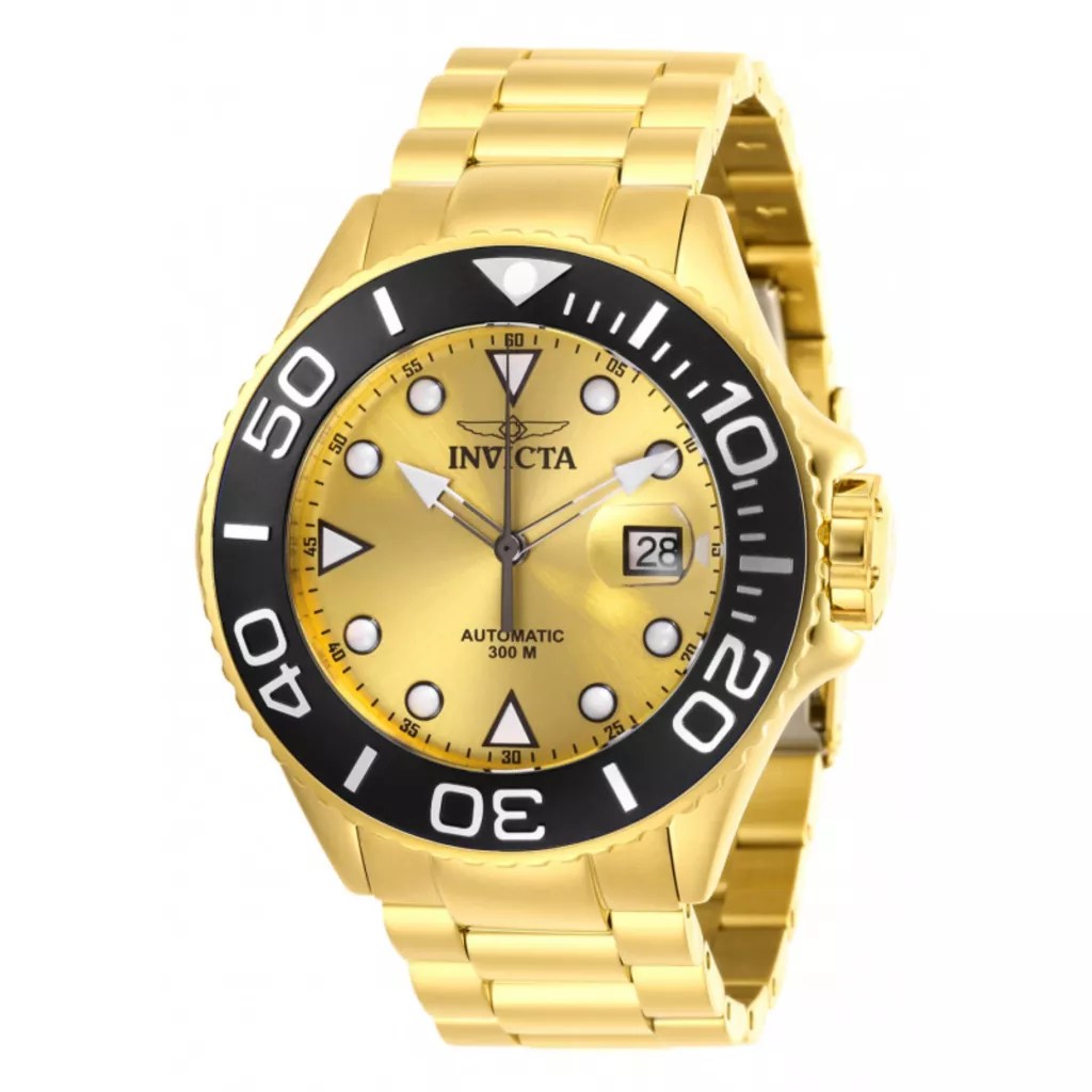Men S Invicta Pro Diver Automatic Gold Tone Watch With Black Dial