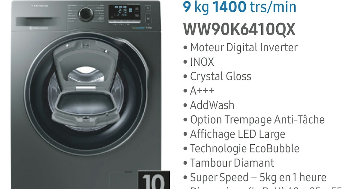 Ultra basse consommation cette machine a laver beneficie de la classe a 10 et permet de reduire jusqua 65 deconomie par rapport a une machine a laver de classe a. Quel que soit lendroit a la maison ou ailleurs vous pouvez instantanement faire demarrer ou arreter le lave linge et surveiller la selection des cycles le temps restant et les signaux de fin de lavage. Entdecken sie die innovative und sparsame waschmaschine ww90j6400cw mit 9 kg fassungsvermoegen von samsung. Cest possible avec la machine a laver addwash 8kg ww81k6404qw.